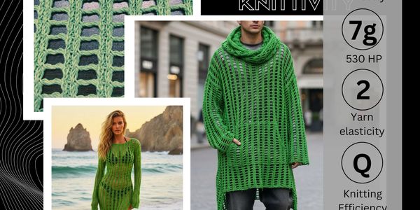 We use state-of-the-art AI-assisted design tools blended with reality to visualize, iterate, and refine our stitch concepts — blending real yarn data, knit logic,machine capabilities, and creative storytelling to produce on-point trend / mood boards and digital imageryfor different markets. These trend outlines help designers and brands envision full collections faster and more accurately. What people see is not only possible to produce, it's framed in cost, materials and potential styling.